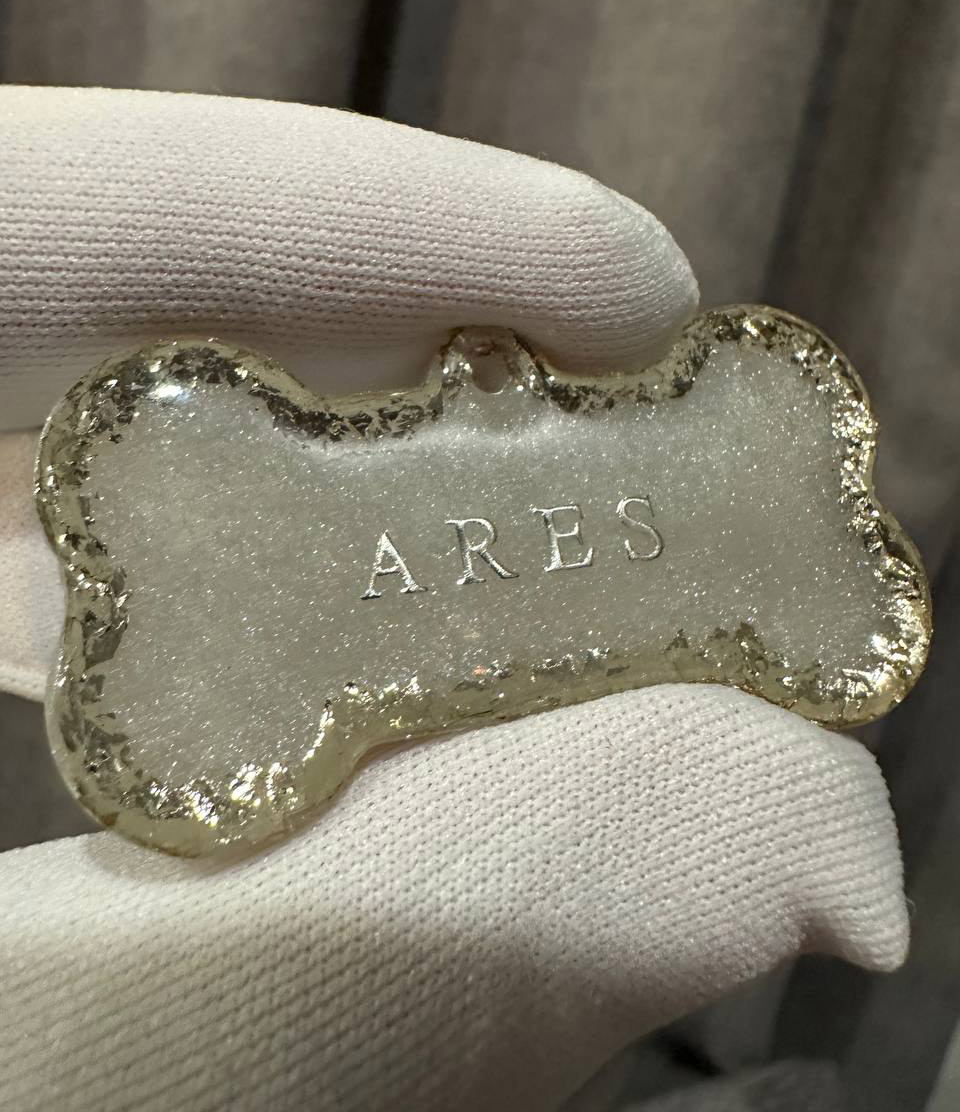 Смола не мутнеет и не теряет блеск. Адресник долго остаётся ярким и аккуратным, как в день получения.